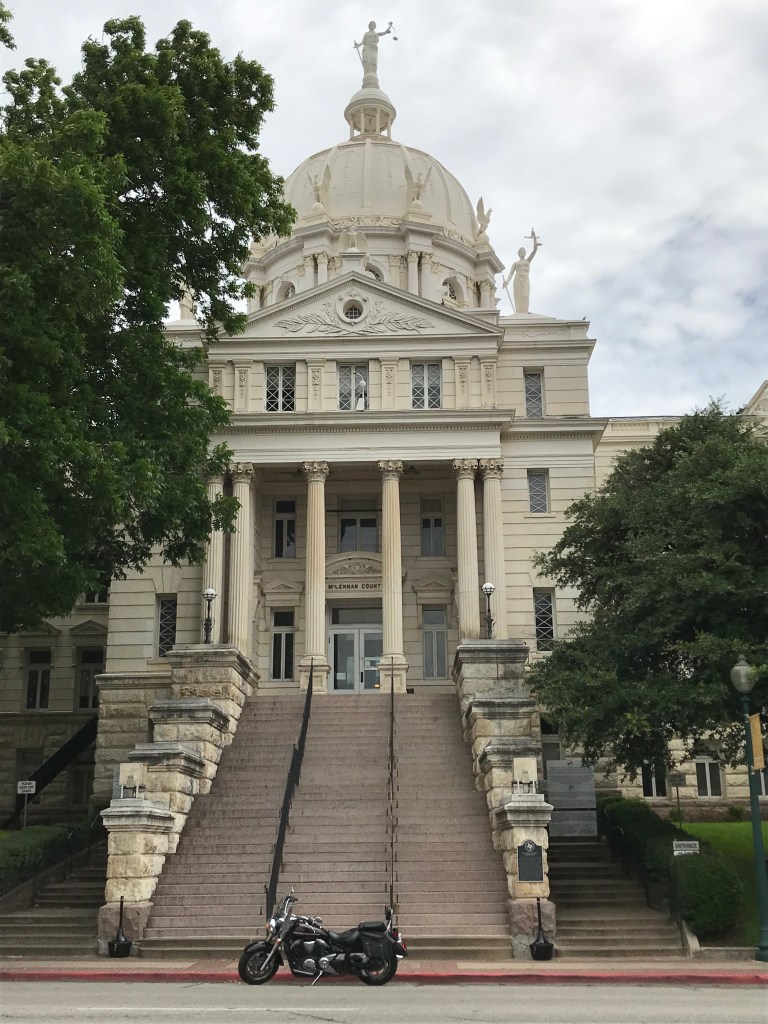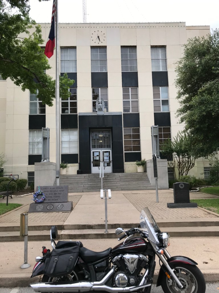 On July 6, I rode northwest. 264 miles was what it took to reach two more counties. I saw the beautiful Bosque County courthouse in Meridian, and another in Hamilton (Hamilton County).
