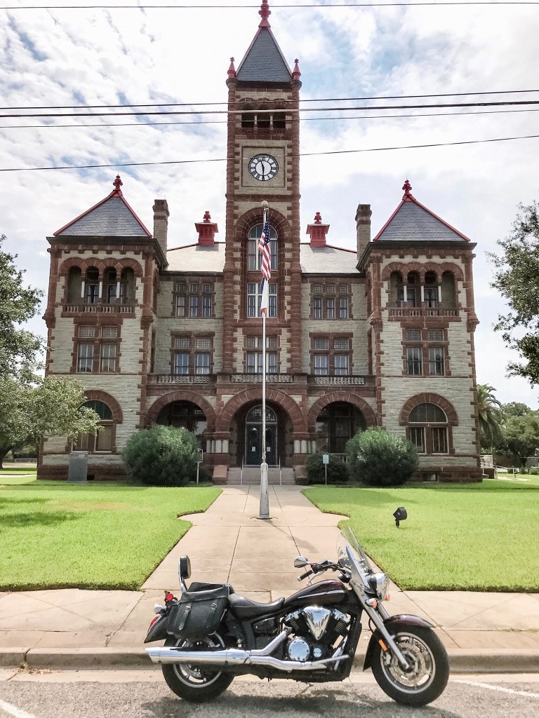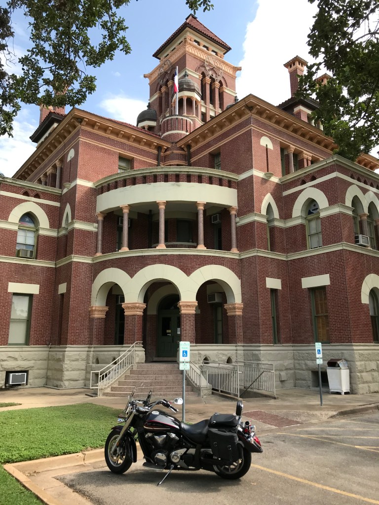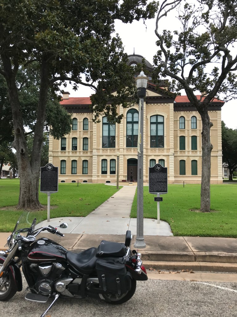 But the Saturday before, August 3, I took another day ride. It would be the last single day ride of this quest – the last chance to reach a decent number of county courthouses within a 300 mile round trip of home. I went southwest to Gonzales (Gonzales County), Cuero (DeWitt County), Hallettsville (Lavaca County), and Columbus (Colorado County). I ate lunch at Rosie’s Mexican Restaurant in Cuero.