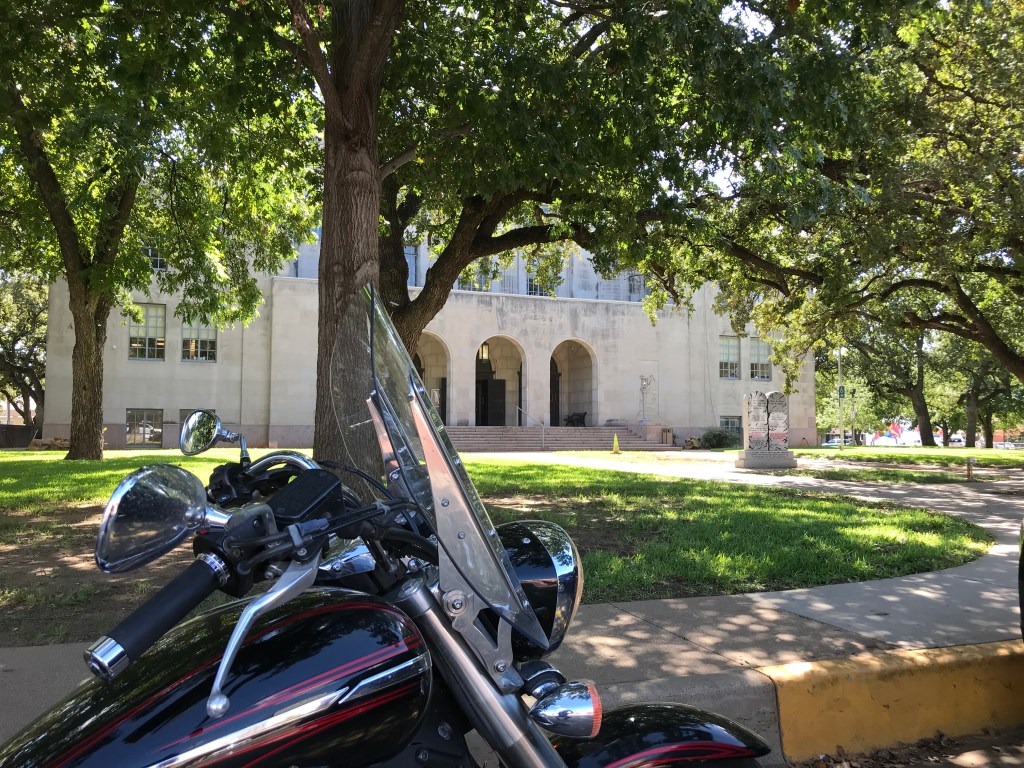 Late September 2019 provided an opportunity for a three day ride through the rolling plains of north central Texas. On the 27th, I rode to Goldthwaite (Mills County), Comanche (Comanche County), Eastland (Eastland County), Breckenridge (Stephens County), Graham (Young County), Archer City (Archer County), and Wichita Falls (Wichita County). I stopped for lunch at Matt Daddy’s on the courtyard square in Comanche.