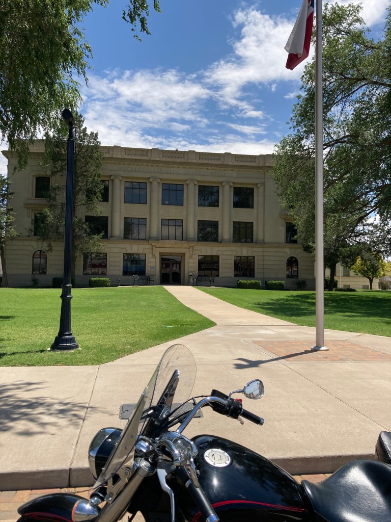 At the end of June 2020, I went on a four day ride out to what is variously referred to as west Texas, the southern plains, the southern panhandle, and the Permian Basin region of Texas. I visited 22 Texas county courthouses on this trip, bringing my total to 225. I only lack 29 counties on this quest.